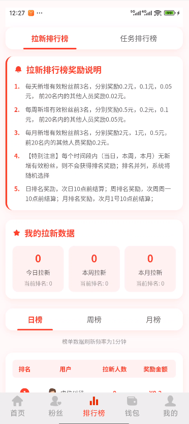 - 3、显示拉新/任务日榜,周榜,月榜数据