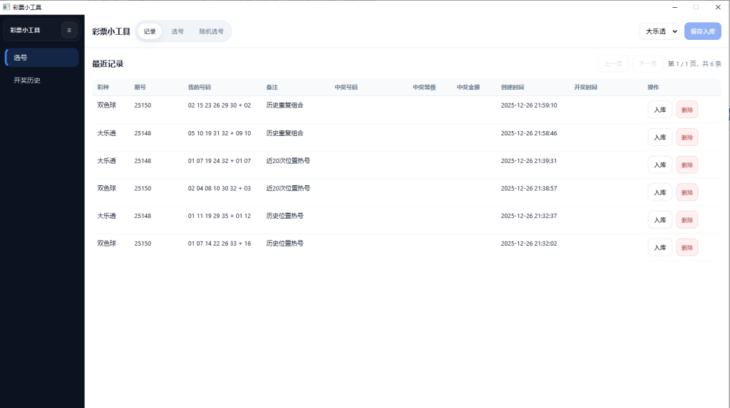 这是一个python项目,该项目的python解释器是项目目录下的script/python.exe,该python已经安装了pip软件包;你现在需要了解python的版本,然后安装适配的pyqt的包,然后创建一个桌面应用(采用pyqt+本地html的方式);左侧放导航栏(可以收起与展开),右侧放内容 ;左侧目前放一个选号,右侧参考此图来设计(但要根据不同彩种显示不同的录入样式),截图是大乐透的选号界面,选号完毕后自动填充到下放输入框中,一行一个